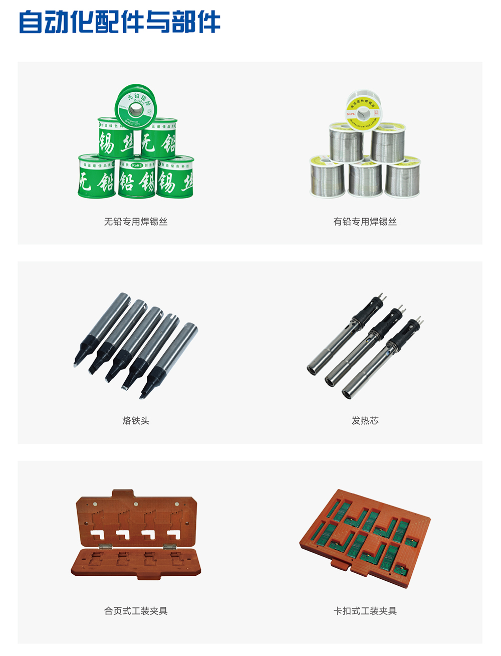 產(chǎn)品包括自動焊錫機(jī)(多軸桌面式焊錫機(jī),CCD視覺白動焊錫機(jī),機(jī)械手自動焊錫機(jī)以及非標(biāo)自動焊錫機(jī)等),自動鎖螺絲機(jī)(吸附式鎖螺絲機(jī),吹氣式鎖螺絲機(jī),多軸自動鎖螺絲機(jī),自動鎖螺母機(jī)等),點膠機(jī)系列設(shè)備(桌面式點膠機(jī),CCD視覺點膠機(jī),高速噴射點膠機(jī),在線式點膠機(jī)等)。